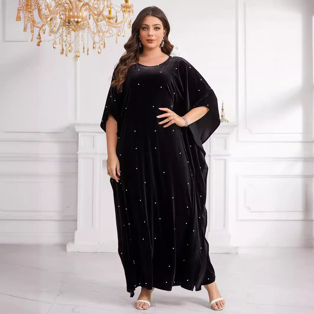 Middle East African Flannel Beaded Pearl Loose Robe With Headscarf